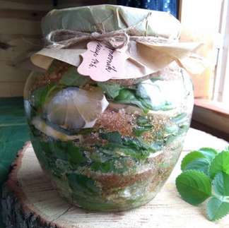 Vše vrstvíme do sklenice od zavařeniny vždy nalámaný rýmovník, na něj plátky pomeranče a citronu, pak zasypeme třtinovým cukrem. Tak pokračujeme, až je sklenice plná. Necháme na okně několik dnů (týdnů), dokud nepustí rýmovník šťávu a cukr se nerozpustí. Občas protřepeme, kontrolujeme, aby nezačal plesnivět. Poté scedíme přes plátýnko, uchováváme v chladu a užíváme při nachlazení (děti 1 lžička 3x denně, dospělí 1 lžíce 3x denně).